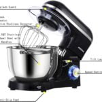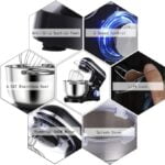 • Multiple Attachment Set – Aucma stand mixer comes with three mixing accessories: whisk, dough hook, mixing beater.The splash guard with access hatch helps add ingredients without making a mess.