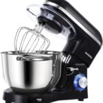 • 6.5Qt Large Capacity Bowl With Handles – 6.5QT Stainless steel bowl can meet all your kitchen needs. The Stand Mixer is easy to use for making cakes, breads, cookies, pastry, muffins and waffle, and the dual handles are more convenient to hold.
